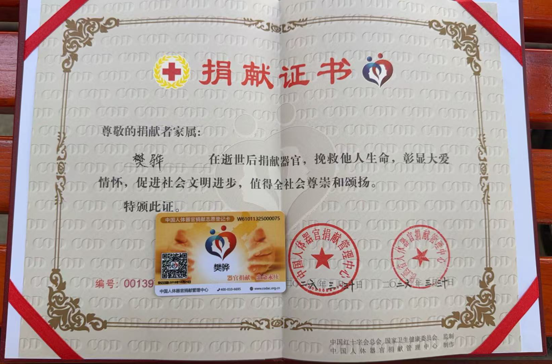 同意捐献樊骅的心、肝、肺、双肾、角膜